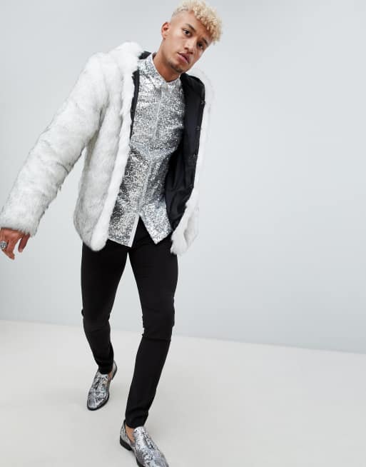 ASOS DESIGN regular fit silver sequin shirt Very well made.